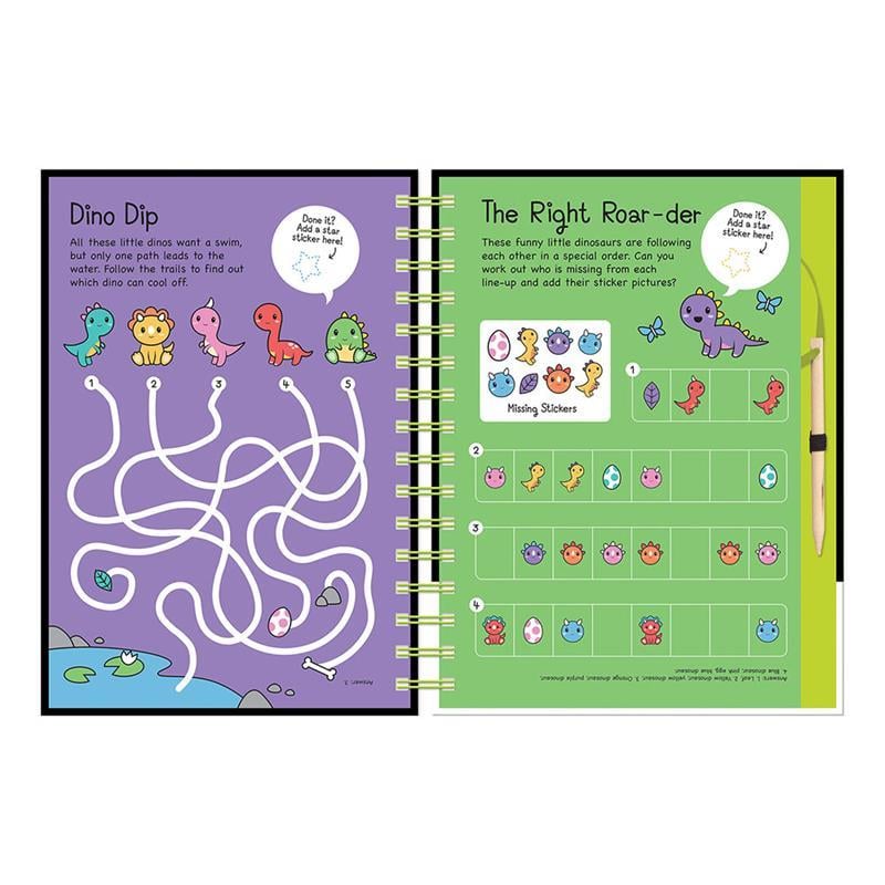 Siyah yüzeyi özel kalemle kazıdıkça, rengarenk dinozor desenleri ortaya çıkar. Eğlenceli, sakinleştirici ve tamamen yaratıcı bir etkinliktir.